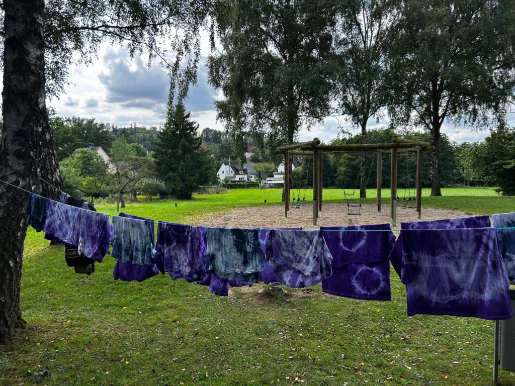 Am heutigen Dienstag starteten wir in den Tag mit einem sehr entspannten und vor allem vielseitigen Programm in den Tag: T-Shirts batiken, Bänder knüpfen und Werwolf spielen. Das Nachmittagsprogramm stellte dann das genaue Gegenteil dar. Bei unserer „Büffeljagd“ konnten die Astronauten die Aliens mal so richtig über den Sportplatz jagen. Für den Abend wurden klassische Stationsspiele in Form einer „Lagerolympiade“ vorbereitet, wie zum Beispiel Sackhüpfen. Wir hören uns morgen wieder zu unserem letzten richtigen Lagertag… 🙁